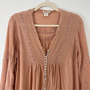 Sundance Crochet V Neck Long Sleeve Peasant Blouse Small Boho Cottagecore Beachy