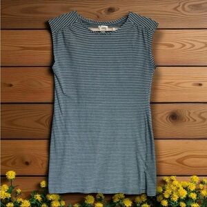 Sundance Day to Day Coastal Shift Dress Sz L Blue Striped Cap Sleeve Beach