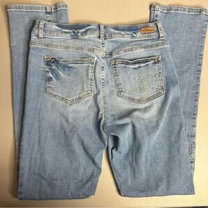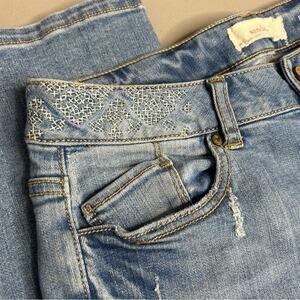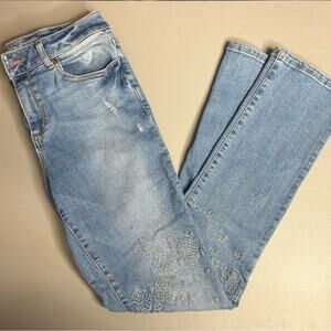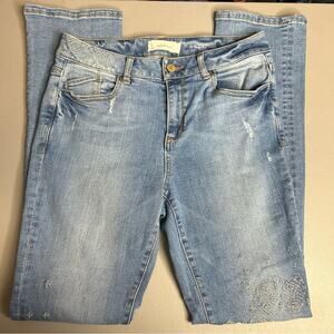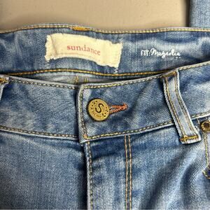 Sundance Denim Blue Jeans Distressed Knee White Embroidered Womens Size 0