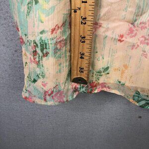 Color/Pattern: Multicolor pastel watercolor floral print on textured crinkled silk for a romantic, feminine look.