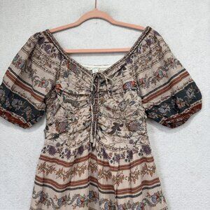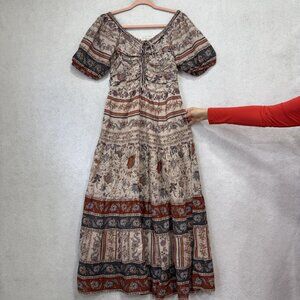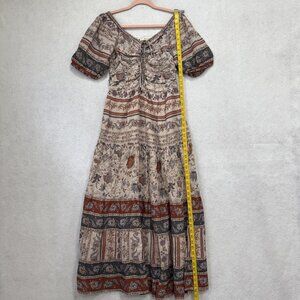 Sundance Dress Womens Small Boho Floral Maxi Puff Sleeve Ruched Lace Up Tiered