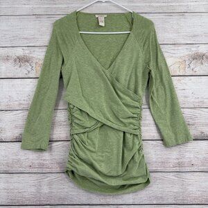 Sundance Dress Women's Small Green Long Sleeve Ruched Wrap Stretch Mini Draped