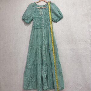 Sundance Dress Womens XS Green Striped Maxi Button Front Smocked Bodice Tiered