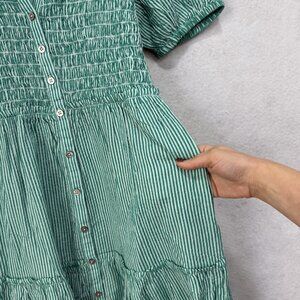 Sundance Dress Womens XS Green White Striped Smocked Button Front Maxi Pockets