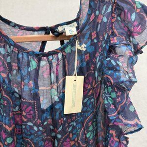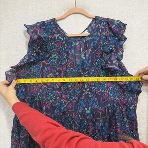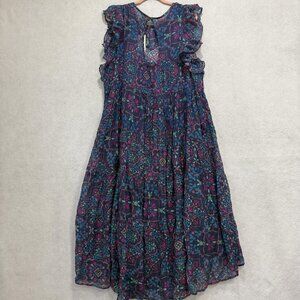 Sundance Dress Womens XXL Blue Purple Boho Floral Flutter Tiered Maxi Lined
