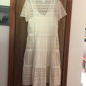 Sundance Dress XS Cream Lace Short Sleeved Fit & Flare w/Slip NEW Boho Romantic