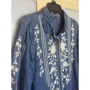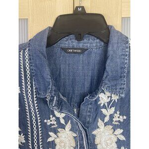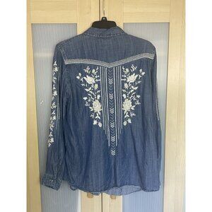 Sundance Driftwood Blue Embroidered Blouse Sz S Top Boho Western Peasant Casual