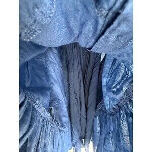 Sundance Elderflower Linen Blend Tiered Dress Size M Blue Long Sleeve Tie Belt