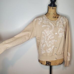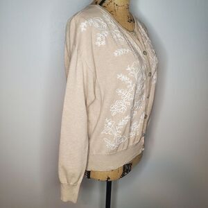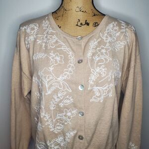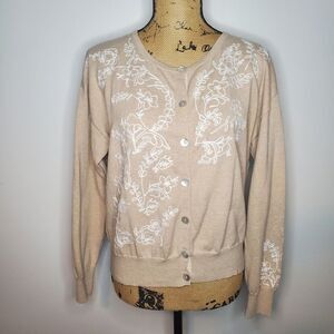 Sundance Embroidered Floral Tan Cardigan Sweater Size M