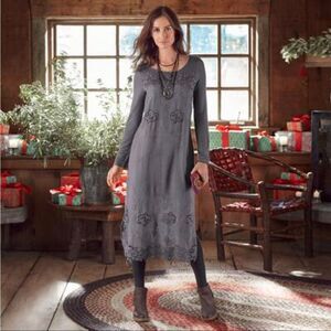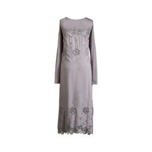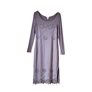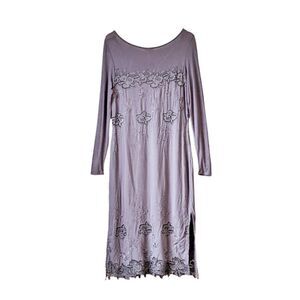 Sundance Embroidered Gray Midi Dress Sz 6 | Romantic Boho Occasion Style