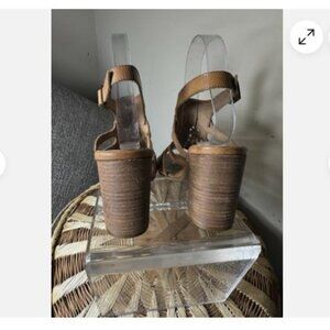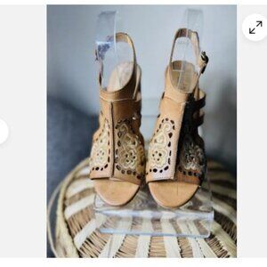 Sundance Embroidered Leather Heels Sandals Ankle Strap Tan Size 37 6.5-7