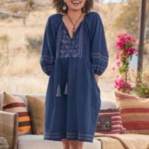 Sundance Embroidered Linen Blend Western Dress