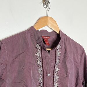 Sundance Embroidered Striped Popover Blouse Red Women’s 10 Long Sleeve boho