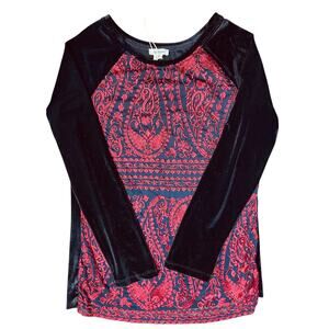 Sundance Enchantress New Velvet Long sleeve boho Top sz S embroidered black red