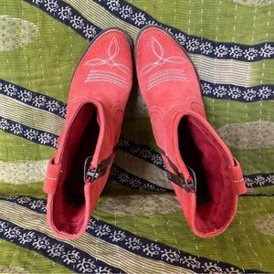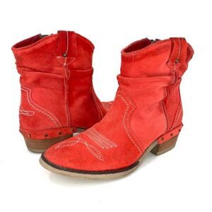 ▪️Brand: Sundance ▪️Market: Women's ▪️Size: EU 37/ US 6.5 ▪️Color: Red ▪️Style: Ankle height, 1.5" stacked heel, slouchy style upper, studded along the heel, side zipper closure, decorative stitching detail throughout ▪️Material: Suede ▪️Condition: Great, there are a few imperfections as shown in the photos, wear on the toes and outsoles, zippers are stiff, overall still in lovely condition Smoke-free cat-friendly home. Color may vary slightly due to lens, lighting, or viewers screen settings Ask me questions! Make me offers! New to Poshmark? Get $10 to spend on Poshmark using my referral code: Thriftbyyy
