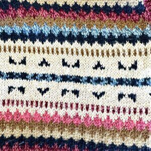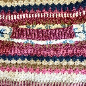 Sundance Fair Isle oversized XS cardigan in Nordic plum with two front pockets and a button-down front.