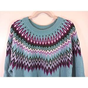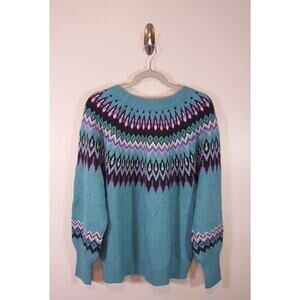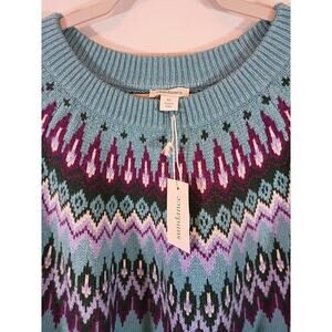Sundance Fair Isle Nordic Boho Wool Blend Crew Neck Women's Sweater Size L New