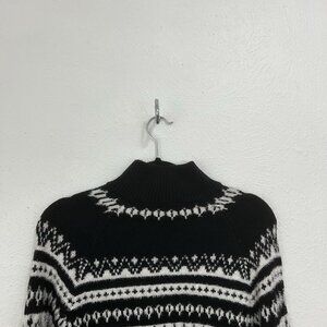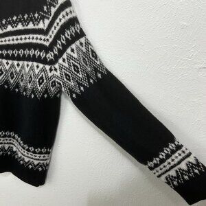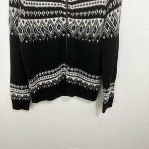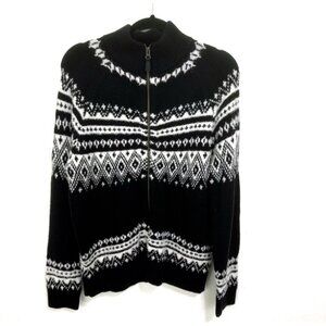 Sundance Fenn Fair Isle Sweater Zip Front Cardigan Black White Size M Cabincore