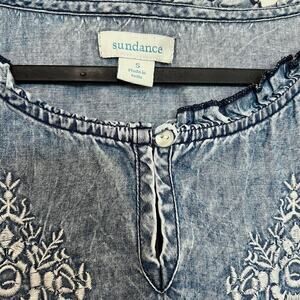 Sundance Fleur De Sel Top Embroidered Floral Lyocell Chambray Ruffle Size Small