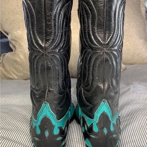 Sundance Flings Teal and Black Cowboy Boots Women’s Snip Toe Size 6.5-7