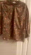 Elegant blouse with floral pattern. Features button-up front and ruffled collar. Ideal for a stylish look. Very nice preloved condition.