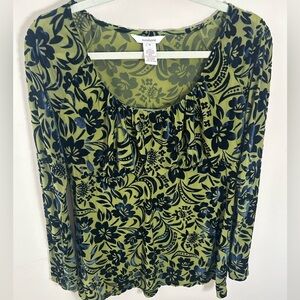 Sundance Floral Velvet Burnout Shirred Bust Top Blouse Green Goth Fairy size M