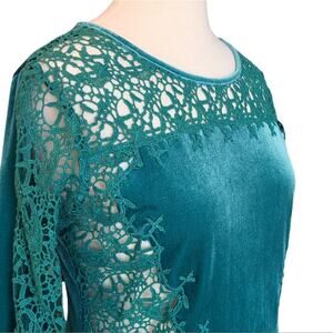 Sundance Forrest Fairy Velvet Lace Cut Out Top XS Green Whimsygoth Goblincore