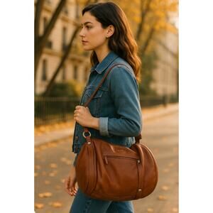 Sundance Genuine Leather Brown Tote Shoulder Satchel Hobo Handbag Boho Chic