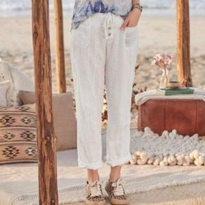 Sundance Gigi White Eyelet Button Front Drawstring Lined Pants.