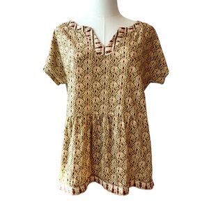 Sundance Golden Yellow Peplum Cotton Short Sleeve Boho Blouse Top Red Tribal M
