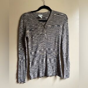 Sundance Gray Henley ribbed knit thermal v neck long sleeve top size M