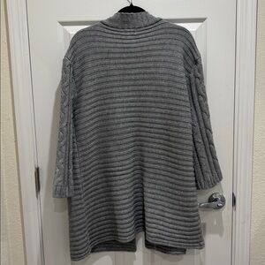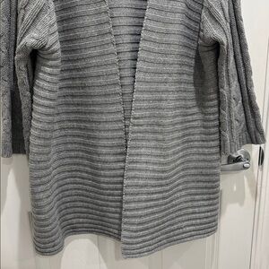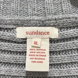 Gorgeous Sundance gray ribbed cardigan! Cable knit 3/4 length sleeves. Open front style. Long length. Medium weight. Relaxed fit. Ideal for layering. Very minimal pilling but otherwise in excellent condition. Women’s size XL.