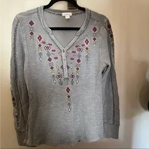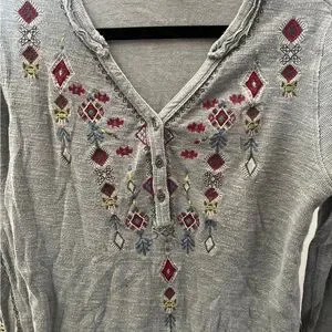 Sundance 100% cotton long sleeved top size Large. Double layered. Soft cotton on the inside, woven outer layer with embroidery details on the front. There was a tiny hole on woven layer which I repaired and isn’t noticeable anymore especially on this boho style imo, mentioned for clarity. GUC