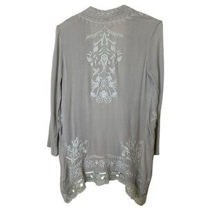 Sundance Gray Y2K Embroidered Open Front Long Line Boho Cardigan W/Lace Size M