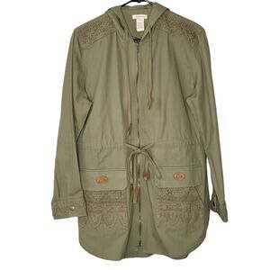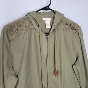 Sundance Green Crochet Lace Hooded Zip Up Anorak Jacket Women's Small