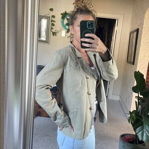 Stylish sage green blazer with button closure. Ideal for versatile wear. Great pre loved condition size 4 by Sundance