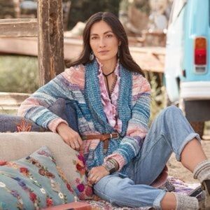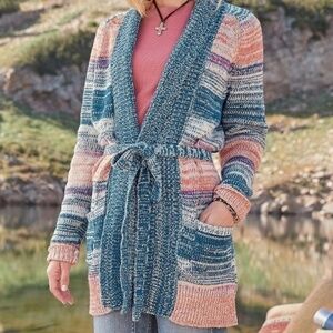 Sundance Silk Blend Marled Knit Belted Southwestern Aztec Cardigan Sweater. Size Medium. Excellent pre-owned condition, no flaws.