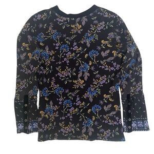 Sundance Homestead Bloom Print Thermal Long Sleeve Top in navy blue. Classic thermal with feminine details. Features a lovely floral print & wide, velvet-trimmed, metal-buttoned cuffs. Crewneck. Semi-fitted. Cotton/spandex. In very good preloved condition with minimal normal wear. Size Medium Petite. Approximate measurements lying flat: 18” from pit to pit & 22.5” length from shoulder to hem. Bundle to maximize shipping!