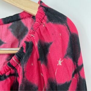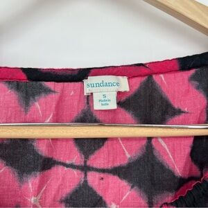 Sundance Hyacinth Batik Peasant Top Embroidered Sleeves 100% Cotton Pink/Navy S