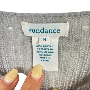 Sundance Ice Gray Mohair Pointelle Open Knit Beaded Lightweight Pullover Sweater