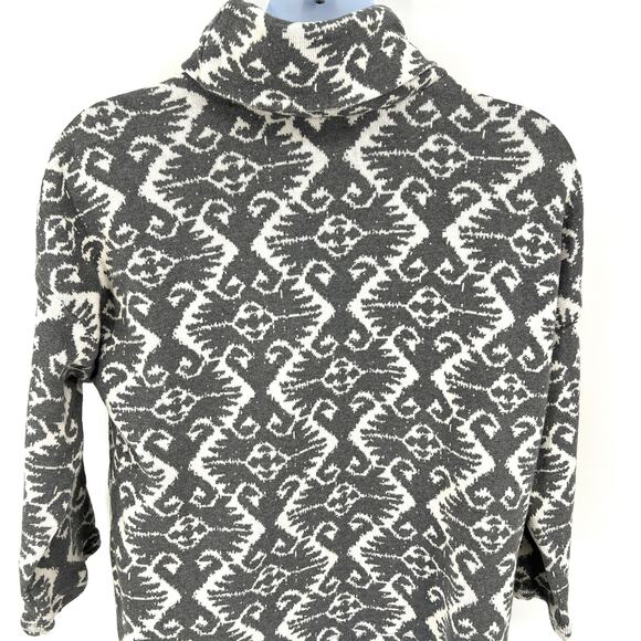 Sundance In The Fjords Gray White IKAT Print Cotton Turtleneck Sweater Size XL