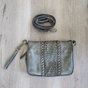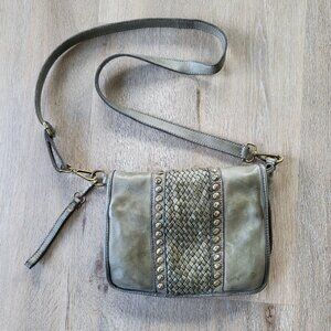 Sundance Italian Leather Studded Convertible Crossbody Purse Olive Green