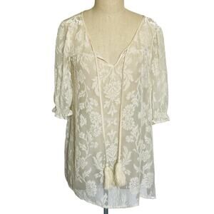 Sundance Ivory Velvet Burnout Sheer Blouse