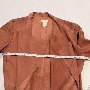 Item: Women's suede jacket with open waterfall drape front