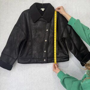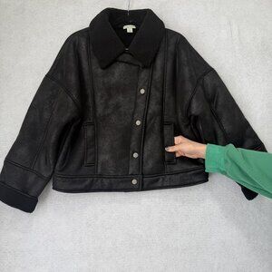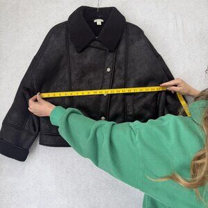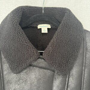 Sundance Jacket Womens Large Black Faux Leather Sherpa Collar Fleece
