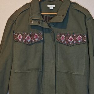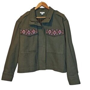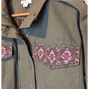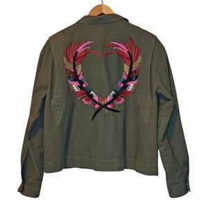 Sundance Jacket Womens Medium Green Embroidered Floral Utility Boho Cotton Pockets