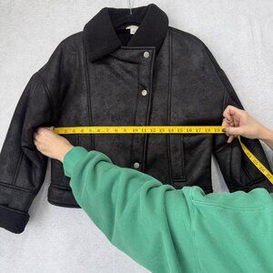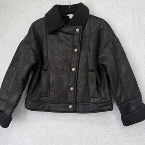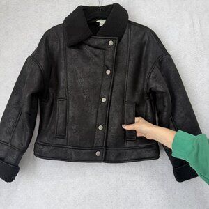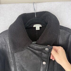 Sundance Jacket Womens Small Black Faux Shearling Sherpa Lined Aviator Moto Snap