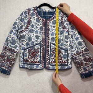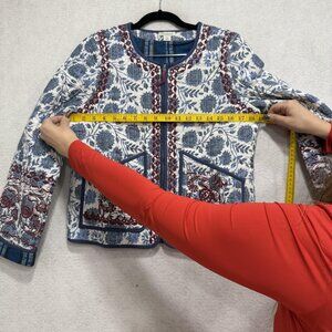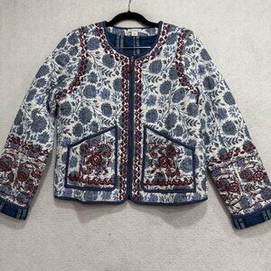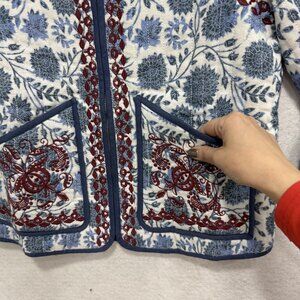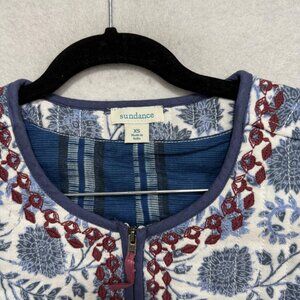 Sundance Jacket Womens XS Blue White Quilted Embroidered Floral Zip Cotton Boho