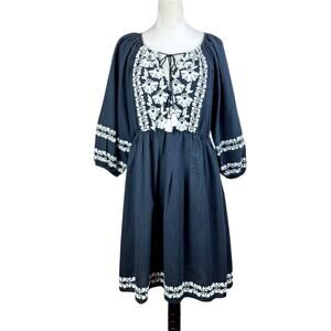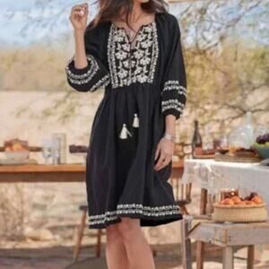 Sundance Josephena Garden Black & White Flower Embroidered Cottagecore Dress
