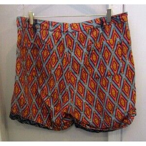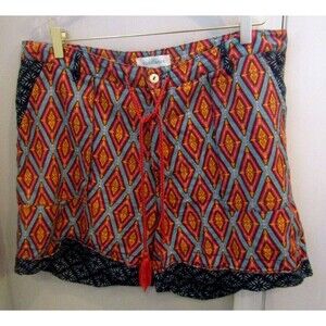 Sundance Kalini Shorts Linen Aztec Drawstring Cuffed Bold Diamond Print Boho Size L